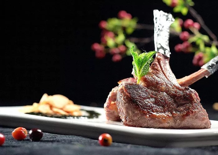 原料:羊排350克、葱20克、洋葱20克、蔬菜汁200克。调料:盐5克、詹王鸡粉5克、嘉豪海鲜酱10克、花生酱10克、料酒10克、孜然粉10克、黄姜粉5克。制作:1、羊排洗净后,用所有调料腌制24小时,腌制过程中手搓2-3分钟以便入味;2、烤时先用锡纸包好腌制的羊排烤50分钟,然后取出抹上一层孜然粉、海鲜酱和花生酱,再烤10分钟上色即可。制作窍门:羊排腌制时,手搓2-3分钟,用竹签在羊排表面打眼便于入味,还要加蔬菜汁。举一反三:法式烤羊腿、法式烤猪排、法式烤牛排。